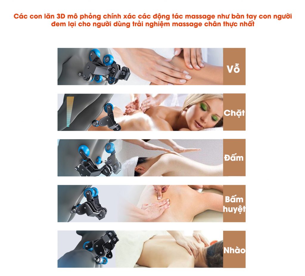 - 6 chương trình massage tự động và chế độ massage thủ công tùy theo sở thích cá nhân.