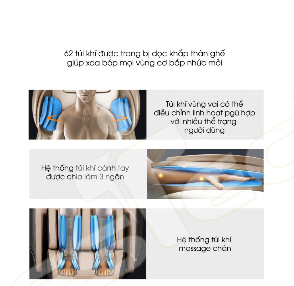 - Hệ thống sưởi tiên tiến kết hợp trị liệu massage bằng hồng ngoại.
