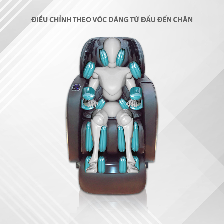 Hệ thống túi khí thông minh cố định và thay đổi tốc độ massage theo vóc dáng người dùng.