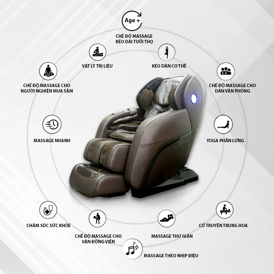 Đa dạng 12 bài tập tự động và các chế độ massage khác nhau. Phù hợp với nhiều đối tượng.