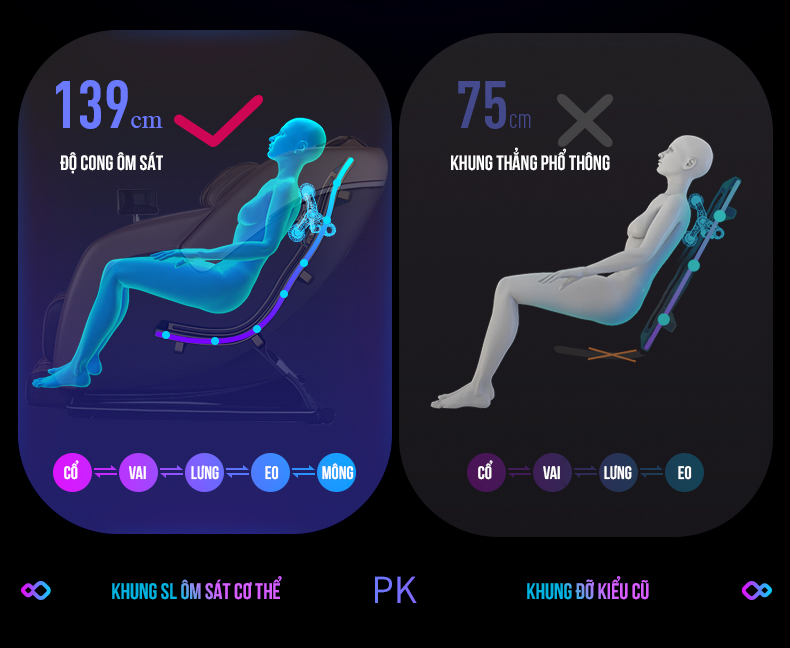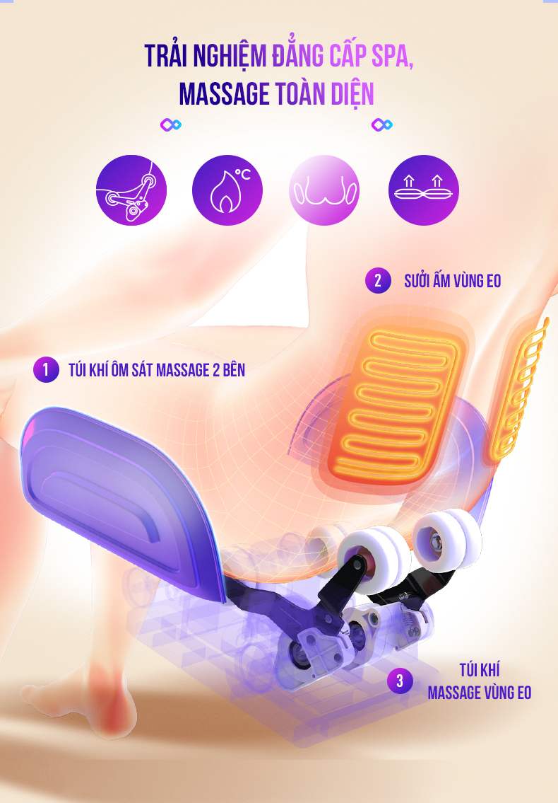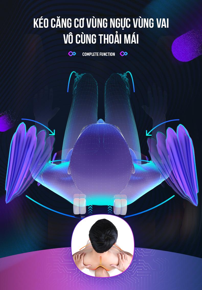 Hệ thống túi khí trải dọc vai, hông, đùi giúp massage giảm đau, thư giãn nhanh